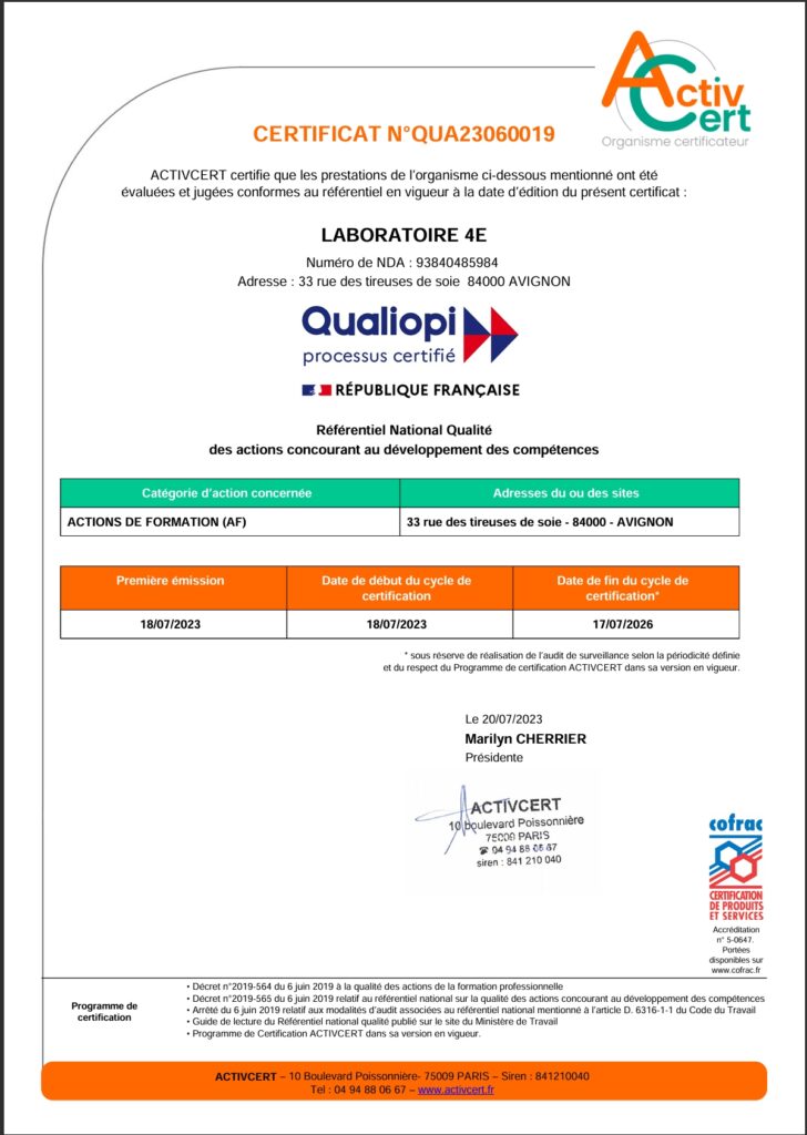 Un centre de formation certifié QUALIOPI en actions de formations.